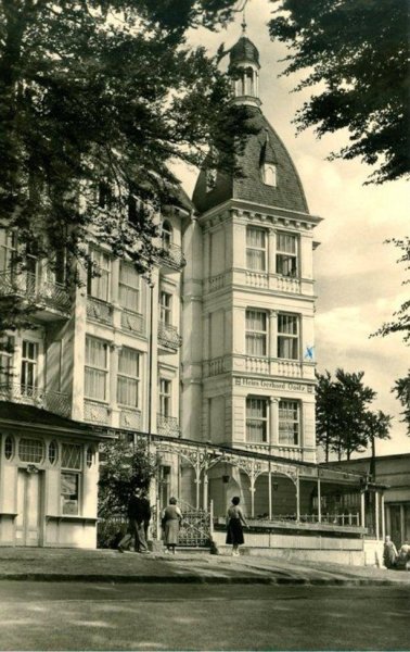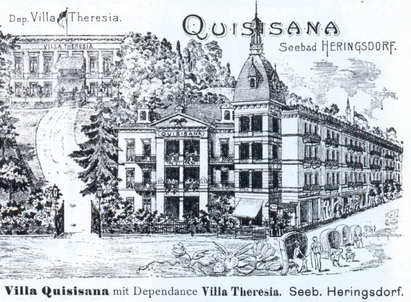 Das große und dennoch verspielte Gebäude wurde als Kurhotel "Quisiana" erbaut. In der DDR-Zeit war es das Heim "Gerhard Opitz". In dieser Zeit wurde bei einer Sanierung auch die verspielte Bäderarchitektur beseitigt und eine pflegeleichte gerade Fassade geschaffen.