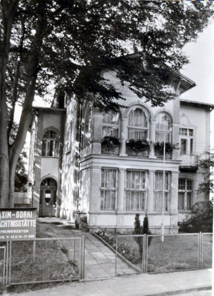 Auf Anregung des sowjetischen Kulturoffiziers Nasarow wurde in der Villa 1948 die Maxim-Gorki-Gedächtnisstätte eingerichtet. Die Villa gehörte zu der Zeit den Berliner Juristen Friedrich Becher, dieser war ein großer Verehrer der Werke von Maxim Gorki. Heute heißt das Gebäude wieder offiziell Villa Irmgard, deren untere Etage an den berühmten Gast mit teilweise originalen Mobiliar erinnert, außerdem befindet sich dort eine kleine Ausstellung über die Geschichte von Heringsdorf. Im Obergeschoss finden wechselnde Künstlerausstellungen statt und in kleiner Saal lädt zu unterschiedlichen kulturellen Veranstaltungen ein.