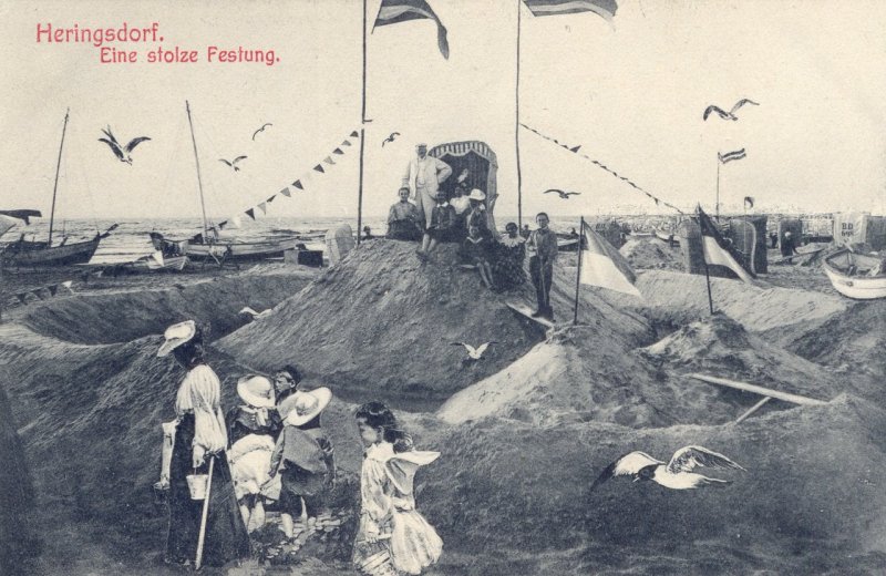 Die stolzen Besitzer des Strandkorbes scheuten keine Mühe und schaufelten Berge von Sand um anschließend mit Familie, Strandkorb und Flaggenschmuck auf einem Foto verewigt zu werden.